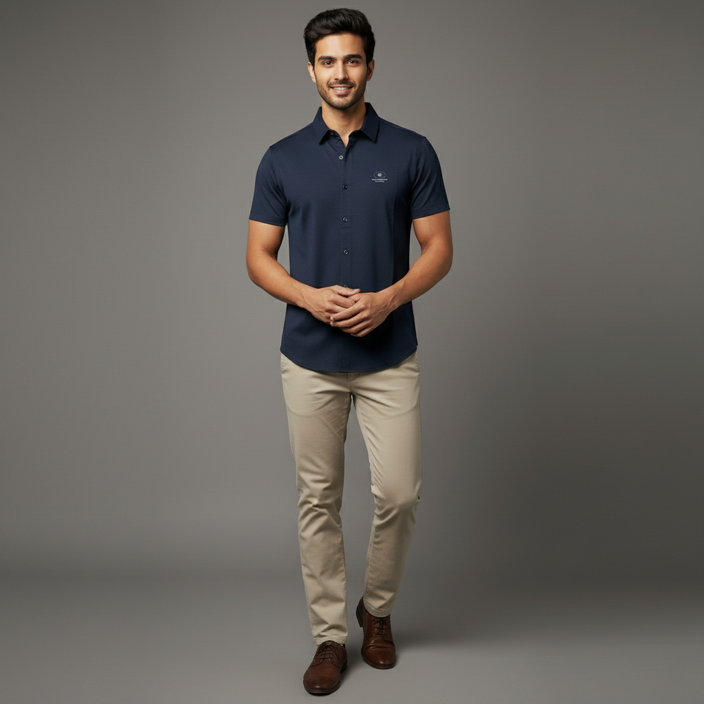 The Modern Fabric: Say goodbye to stiff, wrinkled shirts. This garment is constructed from an innovative Technical Knit fabric that offers exceptional four-way stretch, superior breathability, and natural wrinkle-resistance. It feels like a high-performance polo but looks like a tailored dress shirt.